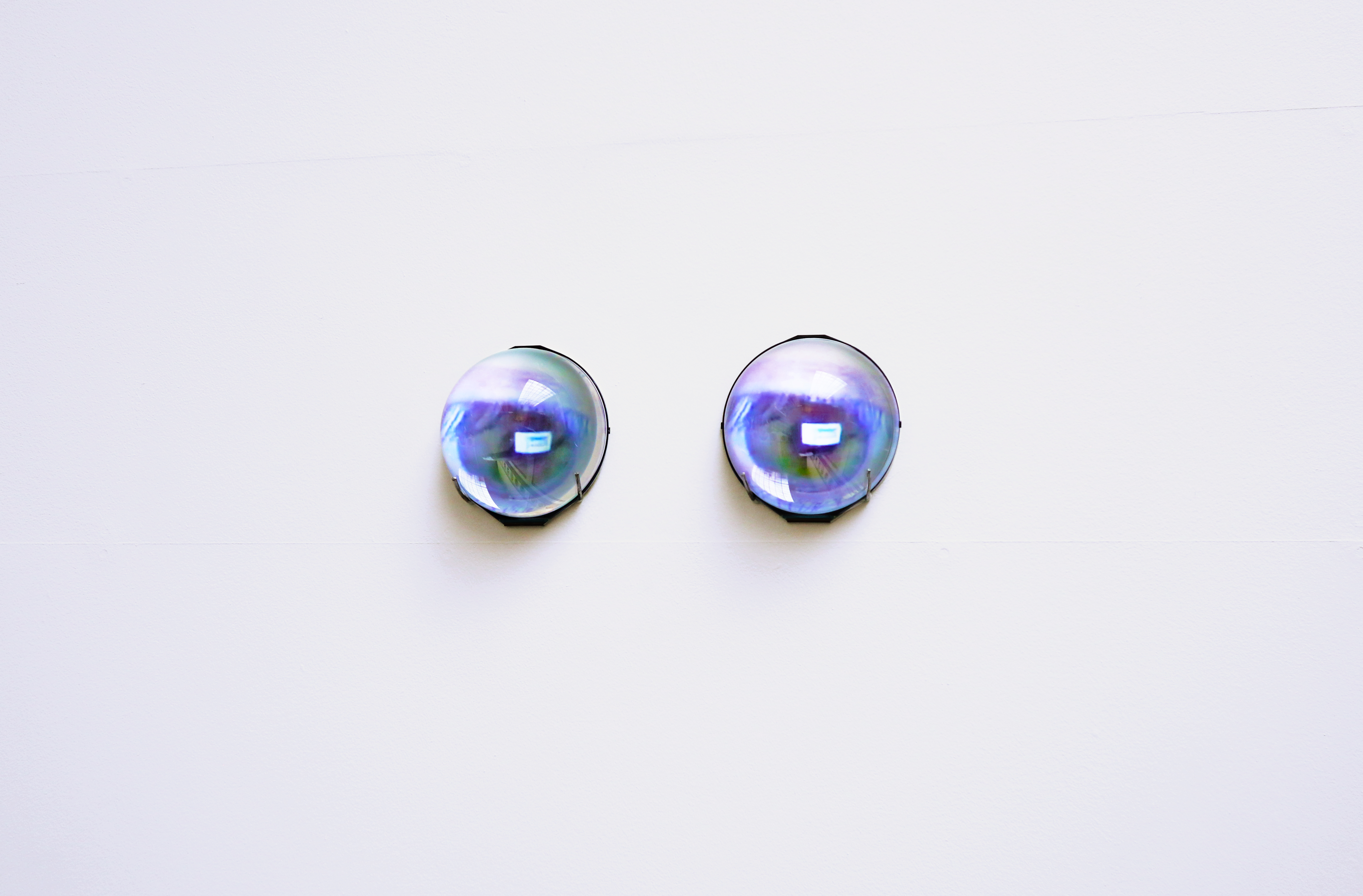 Video loop, 2 x glass lenses, 2 x digital watches screens, Raspberry Pi