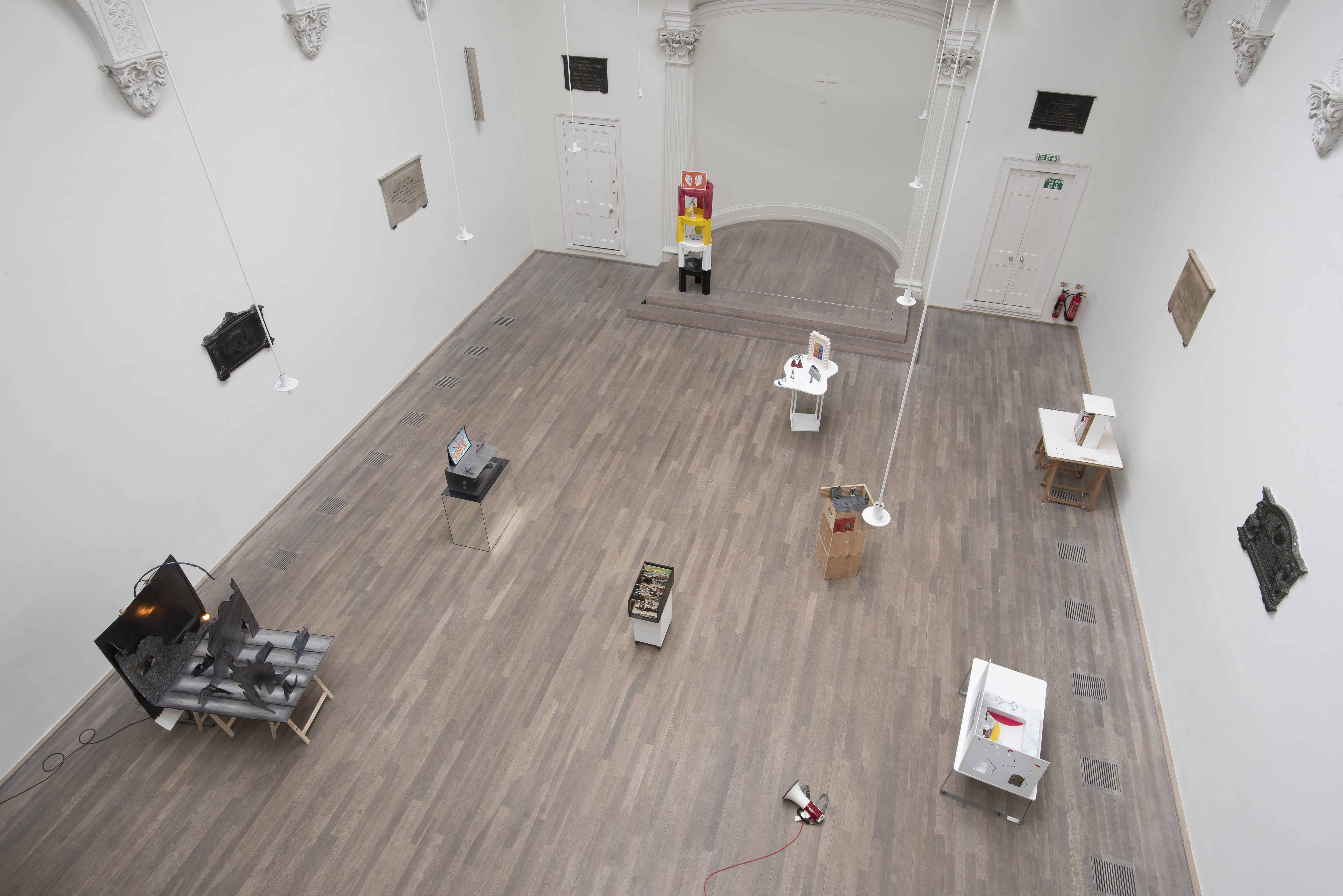 A village of scaled artworks displayed within artist-made models. Created by 9 practitioners, from artists to architects, these propositions for alternative exhibitions play with perspective, material and illusion. Models and maquettes offer up spaces of potential. Caught in limbo, they exist in physical space, but can also be imagined as more than they appear. Maquettes ask you to alter your perceptions of scale and perspective, to make yourself smaller in order to explore these potential happenings, or enlarge what is in front of you so that you may walk into it just as you are. Each unique model, with its artwork housed within, has its own story to tell. This exhibition was made in response to the physical challenges posed by the current COVID-19 circumstance, creating an alternative exhibition model while collaborating remotely to bring together a wide-ranging community of artists and practitioners. We wish to find ways for re-imagining how we can respond to the current circumstances and challenges, through art-making, collective experience and collaboration.