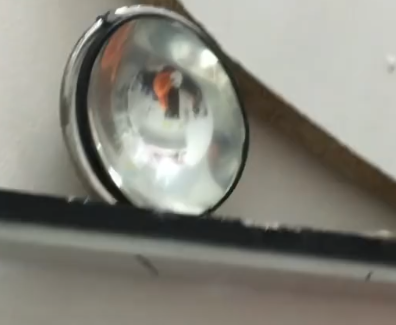 Double glazing window pane, oil paint, convex 'fish eye' lens, concave mirror, metal fixing, cut IKEA laminated chipboard